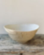 Glazed with a speckled hay wood-ash glaze inside and white dolomite outside matte glaze outside