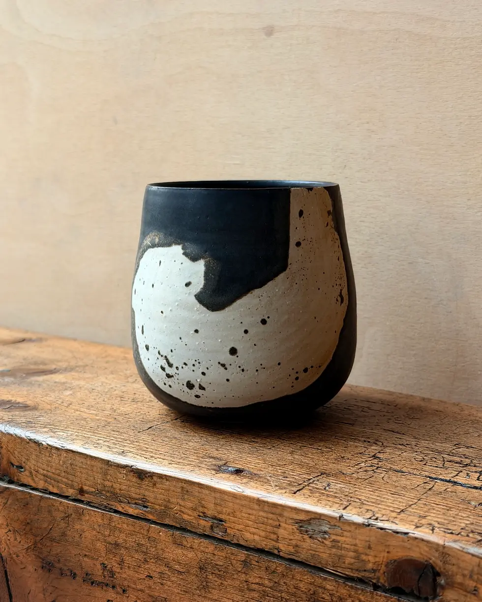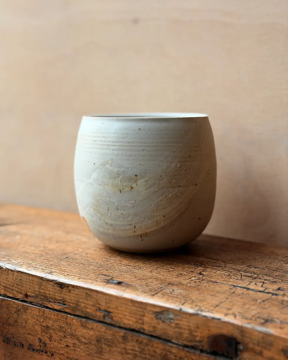 Speckled stoneware with a satin studio glaze (the intensity of the "speckling" can vary from one piece to another)